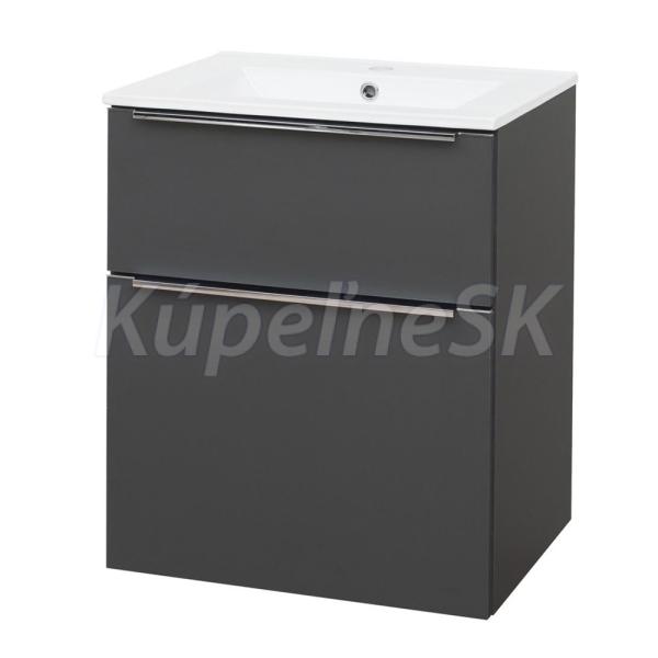 Mereo Mailo, kúpeľňová skrinka s keramickým umývadlom 61 cm, antracit, chróm madlo CN530