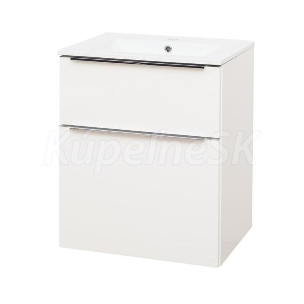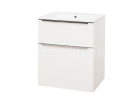 Mailo, kúpeľňová skrinka s keramickým umývadlom, 610x720x476 mm, spodná, biela lesk, 2 zásuvky.