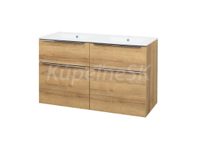 Mailo, kúpeľňová skrinka s keramickým umývadlom 1210x720x476 mm, spodná, dub Riviera, 4 zásuvky.