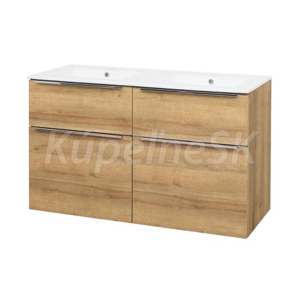 Mereo Mailo, kúpeľňová skrinka s keramickým umývadlom 121 cm, dub Riviera, chróm madlo CN5