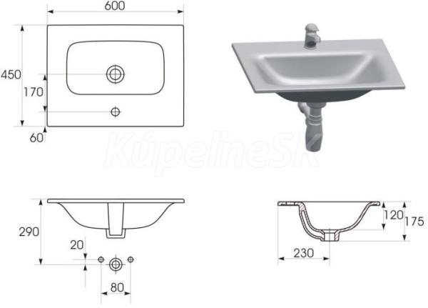 - Umývadlo: zápustné MODUO 60 zo šamotovej keramiky je pokrytá unikátnou glazúrou Cersanit White.