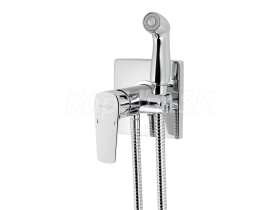 kategória distribúcie Novaservis: Vodovodní baterie | Bidetové baterie. Kvalitná a odolná keramická kartuš KEROX 35 mm . so 7 ročnou zárukou. Prvotriedne chrómové prevedenie. Podomietková bidetová batéria s držiakom sprchy, kovovou hadicou a sprchovou ružicou so STOP-ventilom. Batéria obsahuje podomietkové pripojenie 1/2" so spätnými klapkami.