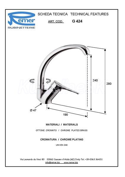 REMER Giga Four drezová jednootvorová batéria horný výtok, chróm