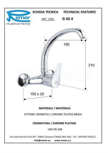 Drezová nástenná batéria - horný výtok od renomovaného talianskeho výrobcu. Rozteč 150 mm. Kartuša vyššia priemer 40 mm. Na telo batérie a chrómovú povrchovú úpravu tela batérie sa poskytuje záruka 5 rokov.