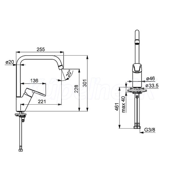 - výtok: 120° otočný,alternatíva 60° odnímateľný doraz
