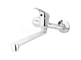 Drezová batéria EOS -14 s praktickým dlhým ramienkom. Nástenná kuchynská batéria s kvalitnou keramickou kartušou, ktorá zaisťuje dlhú životnosť. Drezové batérie zo série EOS majú rozstup 15 cm. Tradičný dizajn a lesklý pochrómovaný povrch sa hodí do každej kuchyne.
