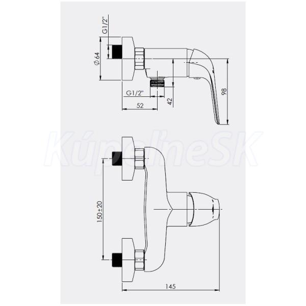 Rubineta NICA-12 Sprchová nástenná batéria 170mm, bez príslušenstva, Chróm