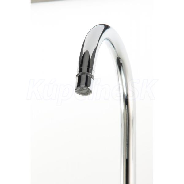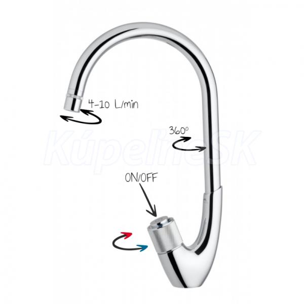 Drezová stojančeková vodovodná batéria SWAN-33 s atraktívnym oblúkovým výtokovým ramenom podčiarkne moderný dizajn každej kuchyne. Batéria je unikátna svojim tlačidlom pre spustenie a zastavenie prúdu .