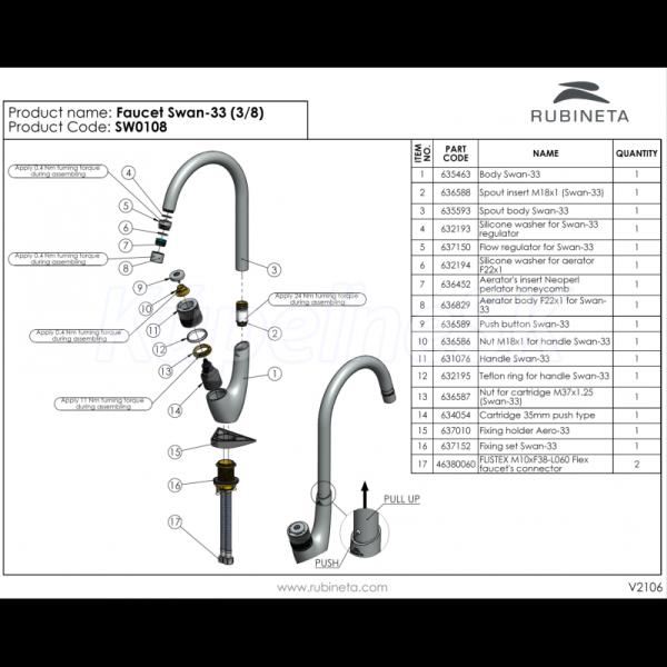 >>  Batérie vodovodné  >>  Drezové-Kuchynské batérie  >>  Rubineta SWAN-33 Drezová stojánková batéria tlačítkový start/stop, Chróm OLBASW0108