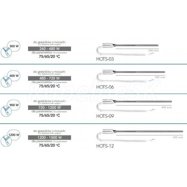 - dĺžka 340 mm, 300 W, tyč odporúčaná pre radiátory s tepelným výkonom 235 - 349 W
