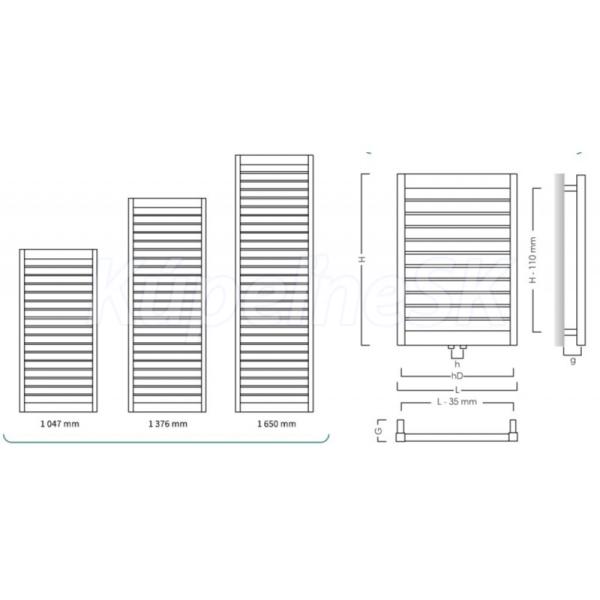 - 500 × 1376 mm, výkon 655 W (vykurovacia tyč 600 W)