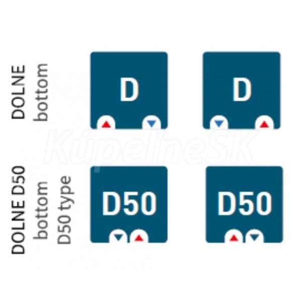 Za príplatok je možné dodať spodné centrálne pripojenie 50 mm za príplatok 15% k cene za spodné pripojenie. Upozorňujeme, že tento druh pripojenia je iba na objednávku.