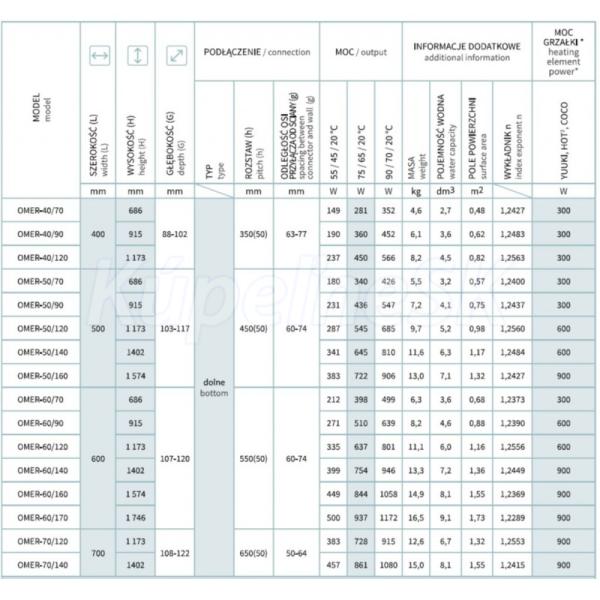 - 700 × 1173 mm, výkon 728 W (vykurovacia tyč 600 W)