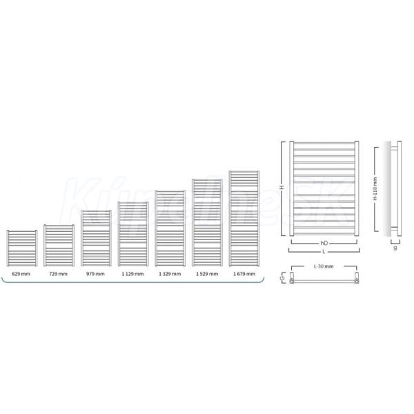 - 530 × 1529 mm, výkon 669 W, (vykurovacia tyč 600 W)