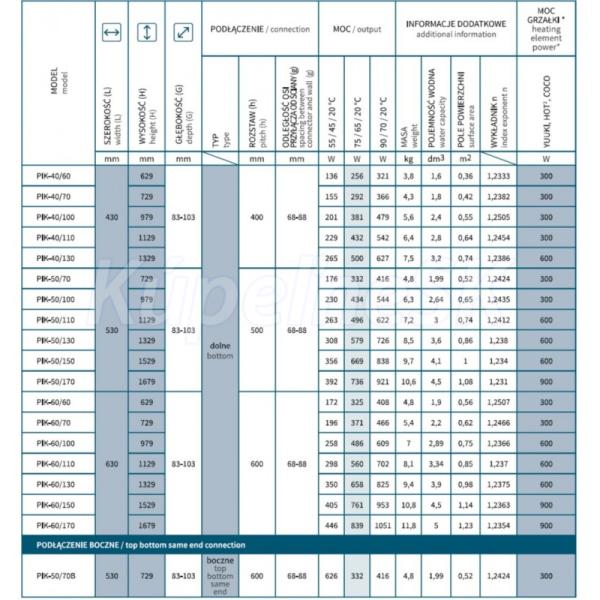 Dostupné rozmery radiátora PIKO do kúpeľne: