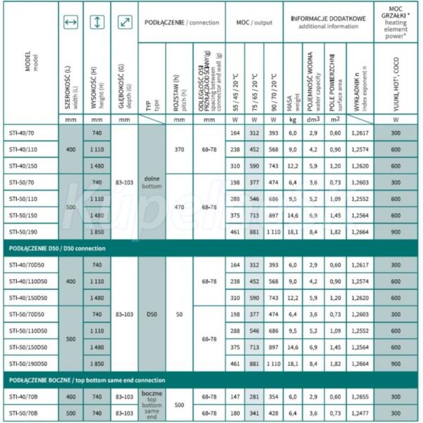 - 500 × 740 mm, výkon 377 W (vykurovacia tyč 300 W) - BOČNÉ PRIPOJENIE