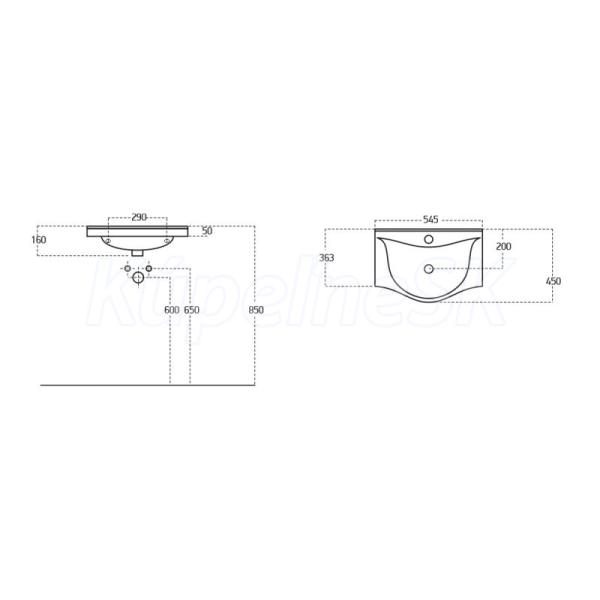 • Keramické umývadlo VIKY 55 (54 × 44,5 × 14,5 cm) + spodná skrinka (51,3 × 34 × 43,7 cm)