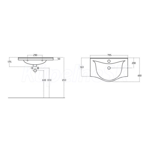 • Keramické umývadlo VIKY 80 (79,5 × 46 × 17,5 cm) + spodná skrinka (75,2 × 34 × 43,7 cm)