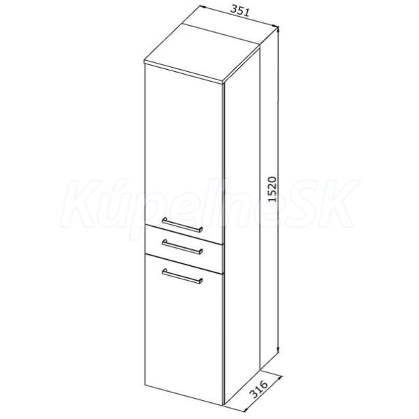 - Rino - B, vysoká bočná skrinka, 1x dvierka, 1x šuplík, 1x kôš, ľavé prevedenie