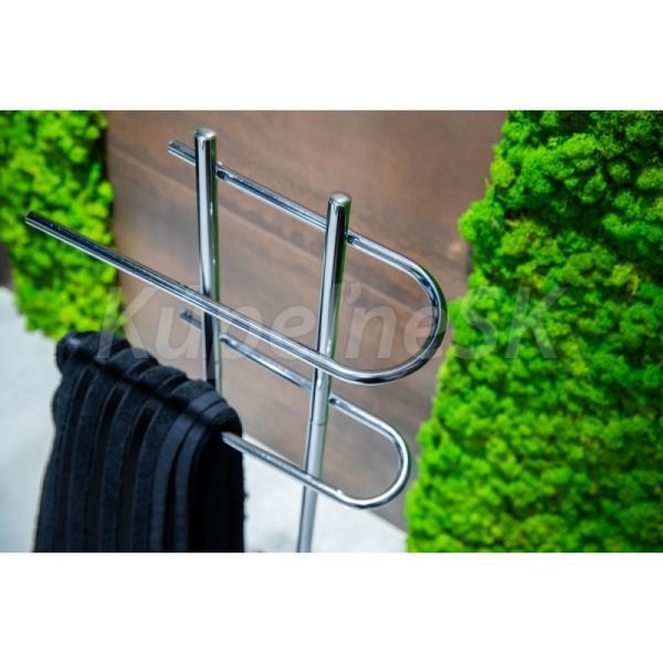 Kúpeľňový vešiak MOON je skvelý pomocník. Už nemusíte náročne rovnať svoje uteráky do skrine, alebo pracne prirábať vešiaky do steny. Stačí mať doma náš voľne stojaci vešiak , ktorý sa vďaka svojmu tvaru dá pekne umiestnený vedľa steny. Konštrukcia sa vyrába z chrómovanej ocele. Nášho "nemého sluhu" si určite obľúbite pre jeho praktickosť. Dodávané v demonte.