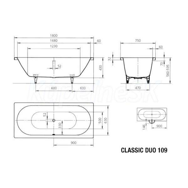 Kaldewei CLASSIC DUO 109 1800x750x420 Obdĺžnikové vane Kaldewei BW CLASSIC DUO 109, 1800x750x420 AS, alpská biela, P