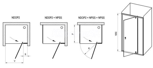 Výrobok se skladá z jedného rovného otočného dielu, ktorý tvorí dvere. Otočením sprchových dverí o 180° získáte ľavú alebo pravú variantu otvárania. Montuje se do obloženého rohu kúpeľne (ideálne do vymurovanej niky alebo v kombinácii s pevnou stenou NPSS) na vaničky RAVAK PERSEUS, PERSEUS PRO, PERSEUS PRO FLAT, PERSEUS PRO CHROME, GIGANT PRO, GIGANT PRO FLAT, GIGANT PRO CHROME alebo priamo na podlahu so zabudovaným odtokovým žľabom či podlahovou výpusťou. Kombináciou s dvoma pevnými stenami typu NPSS vytvoríte sprchový kút v tvare „U“. Použitím nastavovacieho profilu NNPS možno výrobky rozšíriť o 20 mm, preto sa dokonale prispôsobia stavebným nerovnostiam až o 4 cm na každej strane.