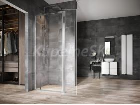 Pevná stena Nexty vo vyhotovení lesklý chróm a s výplňou z číreho skla s ochrannou vrstvou Ravak AntiCalc®. Otočný pivotový systém otvárania. Otočiteľný výrobok pre ľavý aj pravý variant.