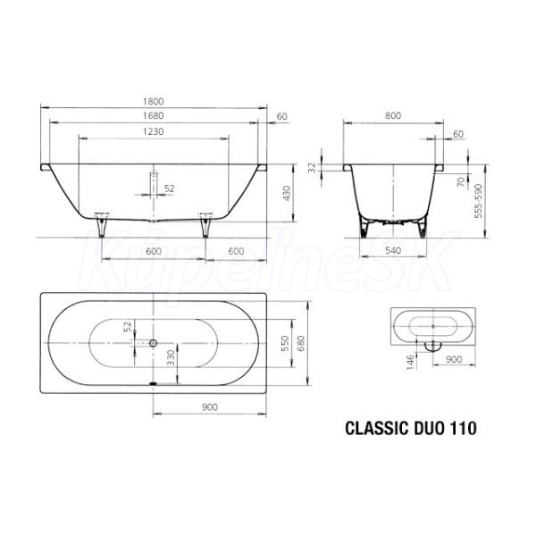 Kaldewei CLASSIC DUO 110 1800x800x420 Obdĺžnikové vane Kaldewei BW CLASSIC DUO 110, 1800x800x420 CAS, alpská biela