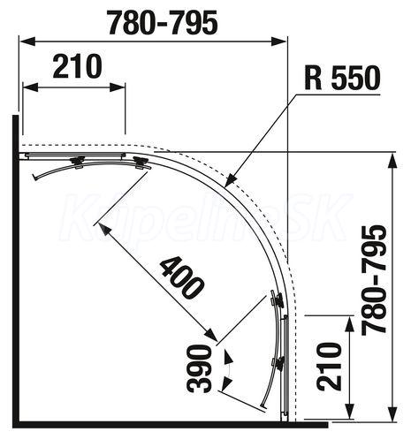 Jika NION Štvrťkruhový sprchový kút 2x posuvné dvere 80x80x195cm, Strieb.lesk/sklo číre