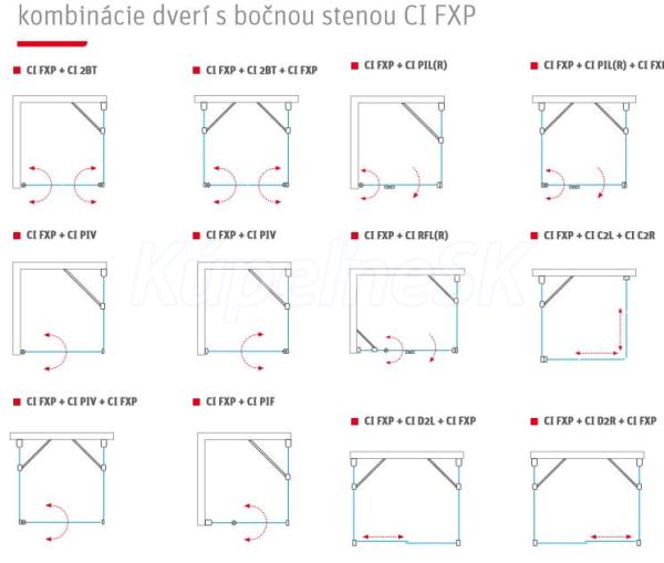 Bočná stena CI FXP je vyrábaná v piatich štandardných veľkostiach a ponúka možnosť kombinácie so šiestimi našimi produktmi! Sú to nasledujúce dvere do niky: CI 2BT, CI PIF, CI PIV, CI PIL(R), CI RFL(R), CI D2L(R). Spolu s ich rozmerovými alebo stranovými variantmi tak môžete vytvoriť neuveriteľných 195 základných kombinácií. Navyše potom ešte s každými týmito dverami do niky zostavíte sprchovú kabínu v tvare „U“ pridaním dvoch stien CI FXP – na ľavú a na pravú stranu. Či už zvolíte akúkoľvek možnosť, verte, že vašej kúpeľni dodá ten správny šmrnc.