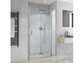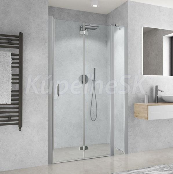 Tieto dvere majú profily z ušľachtilého hliníka v prevedení Brillant. Výplne bezpečnosních skiel ponúkame v nadčasovom prevedení Transparent (číre sklo). Produkt disponuje skladacími dverami, vďaka ktorým si zaistíte ešte širšie a pohodlnejšie vstup do sprchy. Skladacie dvere je možné zložiť úplne k stene vďaka otočným stenovým profilom.