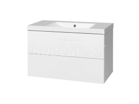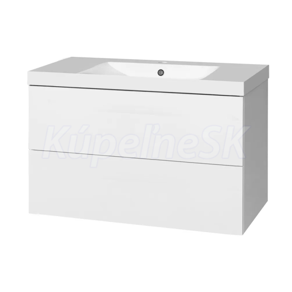 Aira, kúpeľňová skrinka s umývadlom z liateho mramoru 1010x578x465 mm, spodná, biela lesk, 2 zásuvky, push-open systém a pomalé dovieranie.
