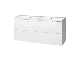Aira, kúpeľňová skrinka s umývadlom z liateho mramoru 1210x578x465 mm, spodná, biela lesk, 2 zásuvky, push-open systém a pomalé dovieranie.