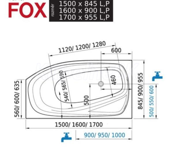 Santech Fox asymetrická masážna vaňa 150x84,5 P Fitnes 300