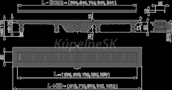 ALCA (Alca Plast / Alca Drain) Simple-Podlahový žľab s okrajom pre perforovaný rošt, čierna-mat APZ10BLACK-750M