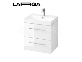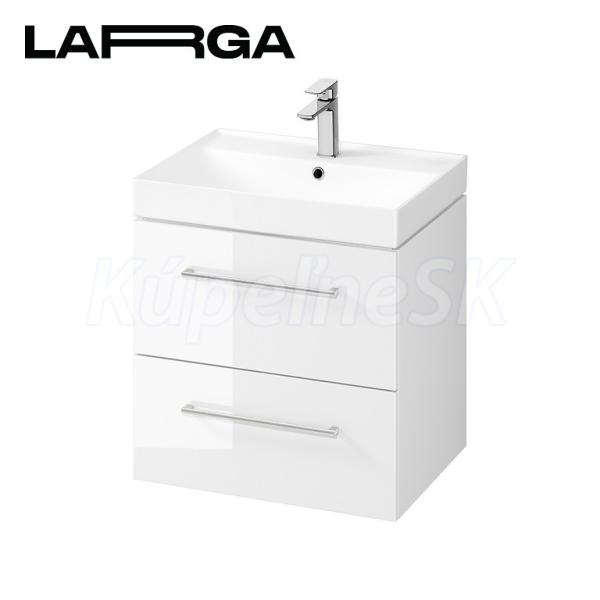 Rozmery 65,2 x 59,4 x 44,4 Súprava obsahuje závesnú skrinku LARGA 60 s umývadlom LARGA 60. Čelo a korpus skrinky sú vyrobené z lakovanej dosky. Skriňa je vybavená systémom mäkkého zatvárania (tzv. SOFT CLOSE) a dvoma priestrannými zásuvkami. Hranaté rukoväte a ozdobné nožičky v 3 farbách (strieborná, zlatá a čierna) je možné zakúpiť samostatne. Umývadlo LARGA je vyrobené z keramiky Rocklite, vďaka ktorej je pevné, ľahké a má veľmi tenké steny.