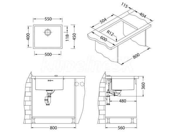 Inštalácia U: do skrinky so šírkou 800 mm Vestavěný dřez