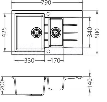 Alveus CADIT 70 SET kuchynský granit. dvojdrez so sifón. 79X50 a batéria SIROS Beige