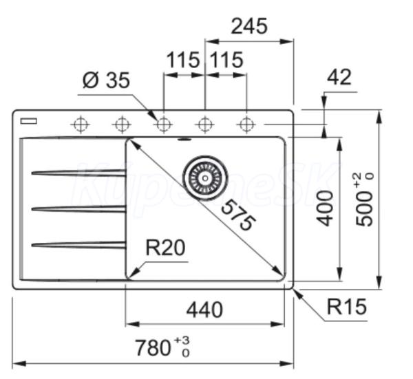 Franke fragranit drez CNG 611-78 TL/7 š.kameň 780x500,sifón