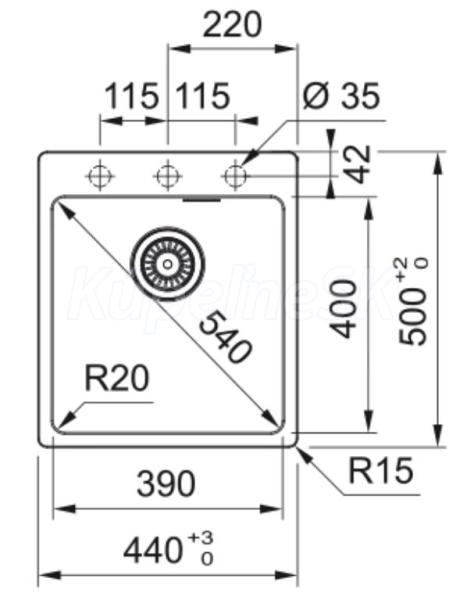 - výrez 420 x 480 mm (rádius 15 mm)