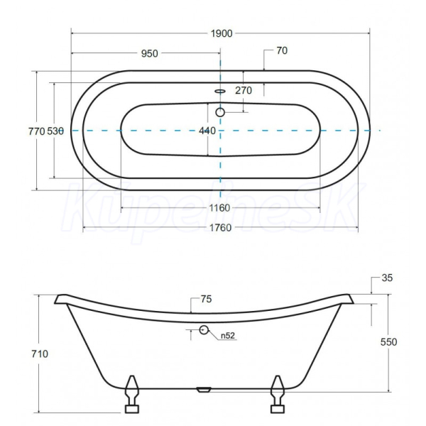 Symetricky oválna voľne stojaca retro vaňa AMELIA GLAM sa vyrába s kovovými ozdobnými nohami v štyroch farebných variantoch ( chróm, čierna, biela a zlatá farba ) . Krásna masívna vaňa z prvotriedneho sanitárneho kompozitu (akrylátu). Čelná strana je prevedená vo GLAM03 grafitovej farbe , horná a vnútorná časť vane v bielej farbe. Konštrukcia vane nevyžaduje obklad ani obmurovanie. Proti mramorovým vaniam má nižšiu hmotnosť a ľahko sa s ňou manipuluje . Vaňa sa štandardne dodáva bez sifónu . K vani je možné dokúpiť retro sifóny ( s prepadom a bez prepadu ) v troch farebných prevedeniach ( chróm, čierna farba a zlatá farba ). Pre potreby výroby (počet otvorov vo vani) je potrebné pri objednávke špecifikovať , aký druh sifónu bude použiť: s prepadom/bez prepadu.