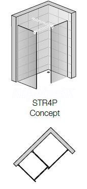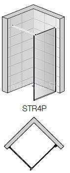 Pevná sprchová stena STR4P sa môže použiť samostatne ako rohový bezdverový sprchový kút, alebo sa môže použiť v kombinácii s druhou stenou STR4P (aj s iným rozmerom)