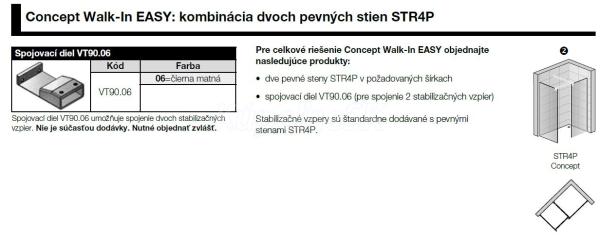 Ronal - Sanswiss Walk-In Easy STR4P pevná stena 8mm samostatná, profil Čierny,sklo Číre+st.vzpera