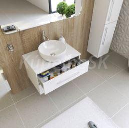 - farba : biela lesklá /viditeľné časti - čelo zásuvky,bočné steny a horná doska skrinky/