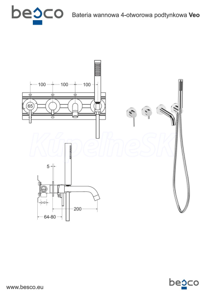 >>  Batérie vodovodné  >>  HOPA  >>  Hopa VEO  >>  Besco VEO podomietkový 4-otvorový vaňový set Chrómový