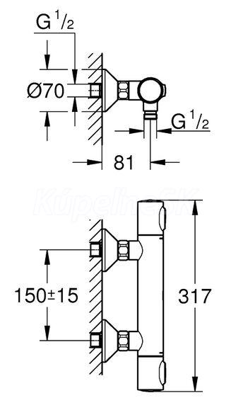 GROHE 34840000 PRECISION FLOW Sprchová termostatická nástenná batéria 150mm, chróm