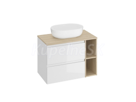 Cersanit set Moduo skrinka 80cm (60+20), oválne umývadlo 50cm, pultová doska, biela/dub