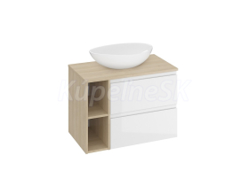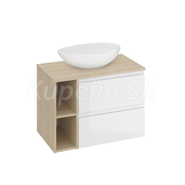 Cersanit set Moduo skrinka 80cm (60+20), asymetr.umývadlo 55cm, pultová doska, biela/dub