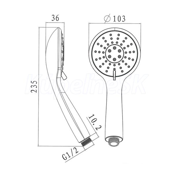 Trojpolohová sprchová hlavica sa vyznačuje moderným dizajnom, vysokou variabilitou a predovšetkým umožňuje takmer ľubovoľnú kombináciu s príslušenstvom sprchového programu. Sprcha je vybavená štandardným závitom 1/2 "pre pripojenie na sprchovú hadicu.
