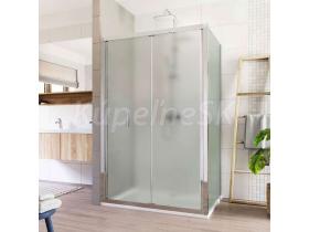 Hliníkové profily vo farbe chróm, zalamovacie dvere a pevný diel, sklo Point, sila skla 6 mm, obdĺžnik, 1000 (dvere) x 900 (pevný diel), výška 1900 mm.
